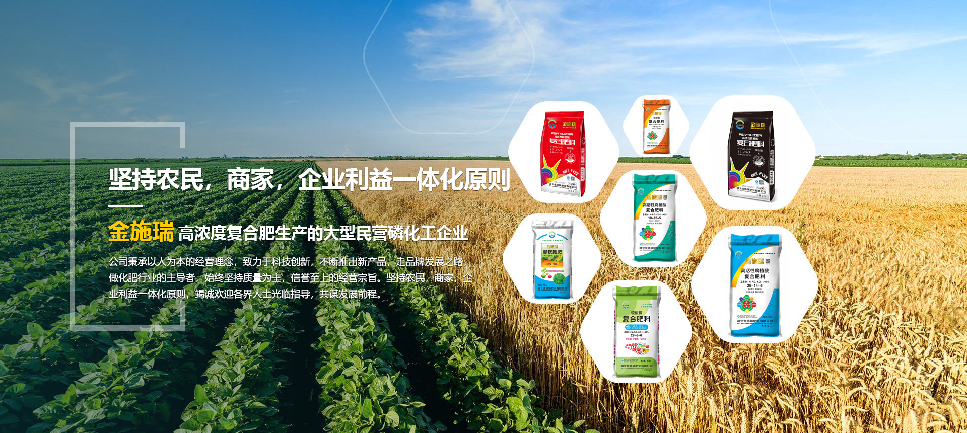 湖北金施瑞肥業(yè)有限公司是一家以生產(chǎn)高濃度復(fù)合肥為主導(dǎo)產(chǎn)品的大型民營(yíng)磷化工企業(yè),在湖北、河南等地均建有大型的現(xiàn)代化生產(chǎn)基地。根據(jù)各地的土壤情況不同由本公司專(zhuān)業(yè)的研發(fā)機(jī)構(gòu)專(zhuān)門(mén)為各地區(qū)研制不同配方的化肥,真正做到測(cè)土配方施肥。